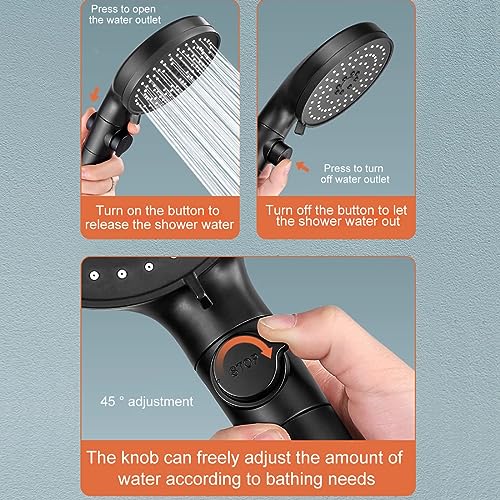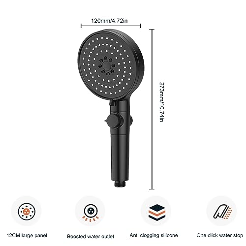 Filtro Soffione Doccia Alta Pressione Anticalcare Doccino per Doccia Doccetta Risparmio Acqua Universale con 5 Modalità di Getto Soffione Doccia a Risparmio Idrico Nero