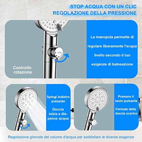 SSJS Filtro Soffione Doccia Alta Pressione, Anticalcare Doccino per Doccia,5 Funzioni Getto, Doccetta Risparmio Acqua Universale Facile da Installare