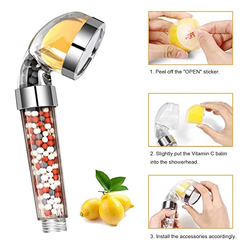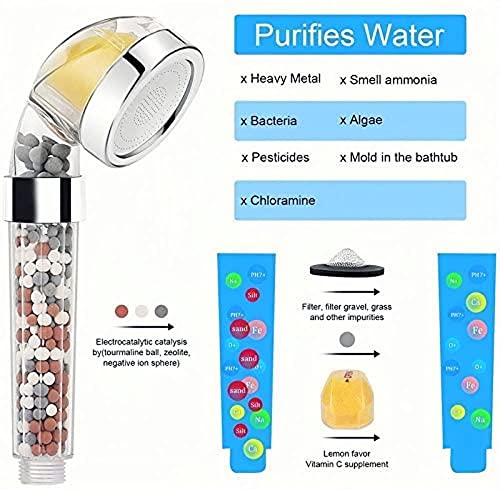 ✔ Lista della confezione e installazione: 1 doccetta (tubo doccia e supporto non inclusi), 1 melissa di limone (installata sul soffione), sfera filtrante (installata sul soffione), facile da installare, non richiede attrezzi. Lasciare che l'acqua scorra attraverso il filtro per 5-10 minuti prima dell'uso per rimuovere i depositi di carbonio.