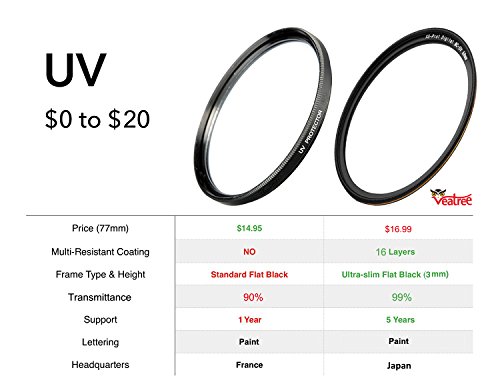PROTEZIONE LENTI: Il filtro UV è utile anche come filtro protettivo generale da lasciare sempre sulle lenti. I filtri aiutano a ridurre la polvere e l'umidità dal raggiungimento dell'elemento dell'obiettivo e fornire protezione aggiuntiva in caso di gocce o situazioni dove graffiare potrebbe verificarsi.