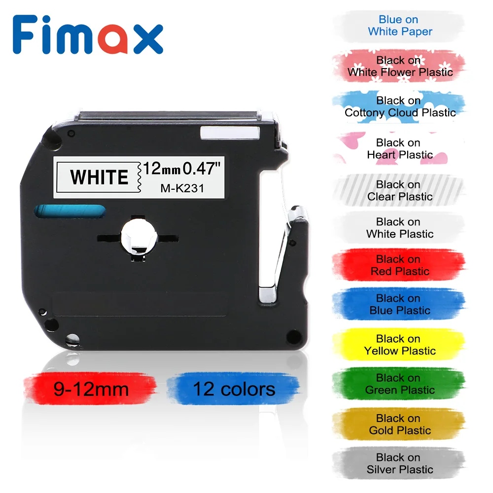 Fimax M-K231 M-K221 Compatible for brother MK231 MK 231 black on white 9mm 12mm laminated strong adhesive label tape PT-80 PT-70