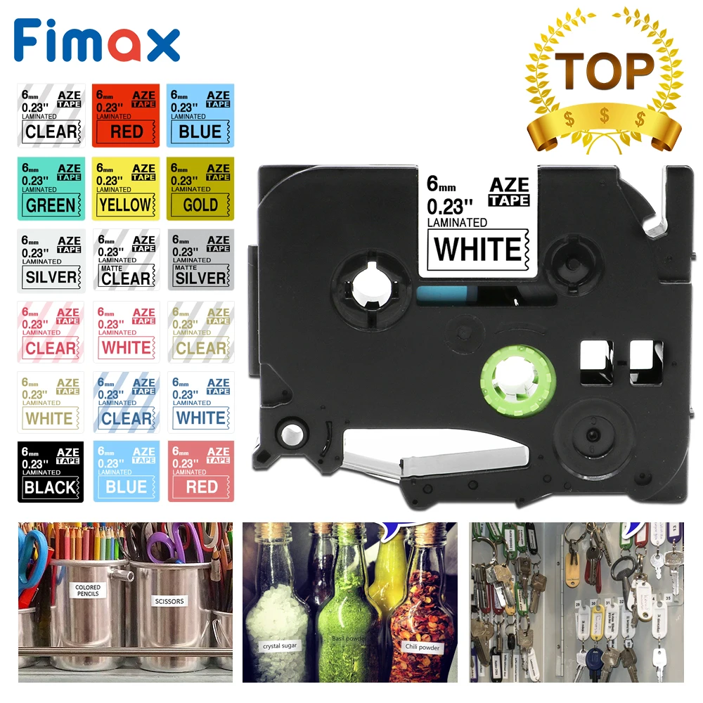 Fimax 1 pcs TZe-211 Tze611 tze-111 Compatible for Brother P-touch Label Tape 6mm Black on White for Brother P touch Printer