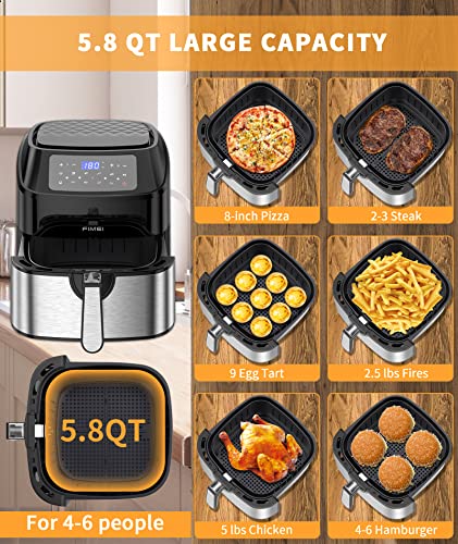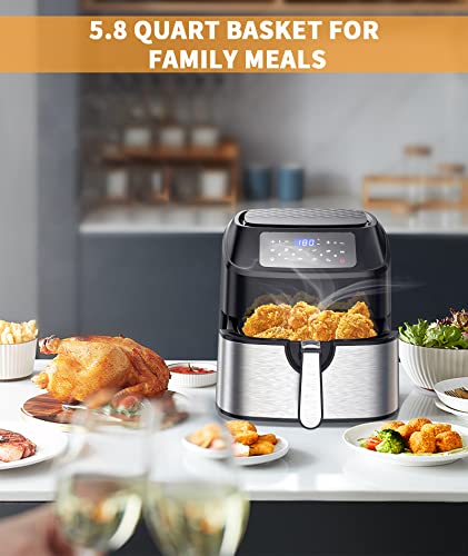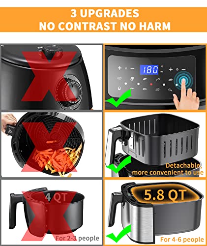 FIMEI friggitrice ad aria calda 5,5 L, 1800W Airfryer in acciaio inox, 10 programmi con display digitale, senza friggitrice ad olio friggitrice ad aria (nero)