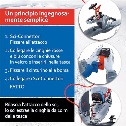 ⛷ TANTI DETTAGLI GENTILI: Facile da usare anche con i guanti da sci / Compatto e leggero, si infila sotto i pantaloni da sci / I connettori da sci con occhiello in gomma possono rimanere attaccati in modo permanente allo sci / Facile da regolare in base alla misura dello scarpone da sci / Valanga: se più persone sono sepolte, le cinghie "trovami" p