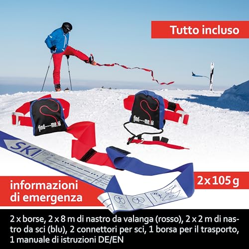 FIND-ME cinghia da neve profonda e da valanga I attrezzatura outdoor I leash 2x10m I sci da alpinismo e da freeride I complementi per l'attrezzatura LVS, per lo sci in neve profonda
