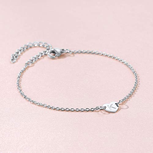 ❤ QUALITÀ ASSICURATA ❤ Braccialetti a cuore con alfabeto iniziale realizzati in acciaio inossidabile senza nichel, senza piombo e cadmio, ipoallergenici, impermeabili, anti-appannamento e anticorrosivi e donano lucentezza al platino di lusso.