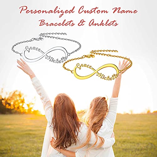 FindChic Cavigliera e Bracciale Personalizzati Infinity con Nome Gioielli da Polso e Piedi in Acciaio Inossidabile per Donna Braccialetto 2 Nomi da 16cm e Cavigliera Infinity da Donna