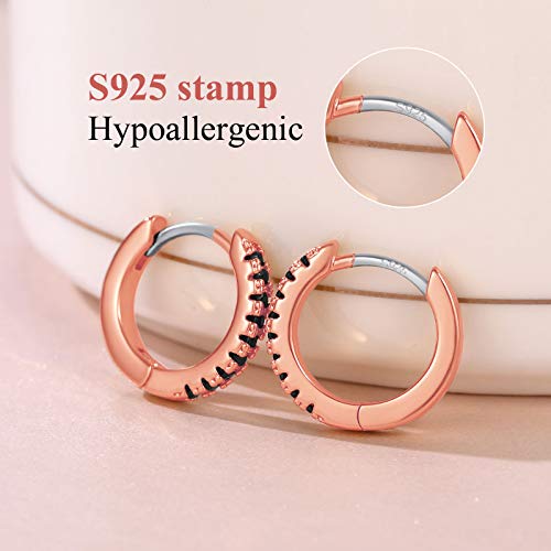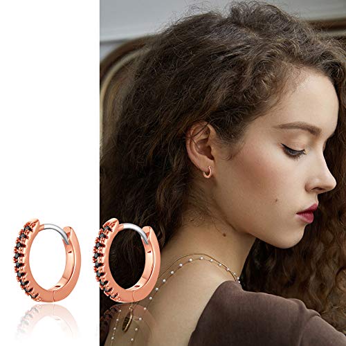 FindChic Zirconia Cubica Huggies Orecchini a Cerchio Piccoli Ipoallergenici Placcati Oro Rosa Gioielli per Donne Ragazze Orecchini Neri con Cerniera CZ Sottili