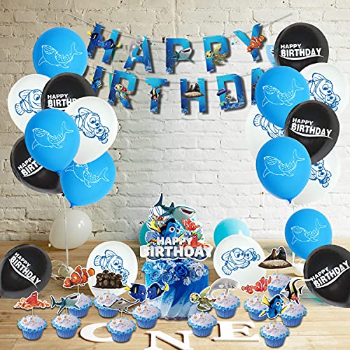 Finding Nemo Decorazione,Tomicy 32pcs Palloncini Addobbi per Feste di Compleanno con Banner, Kit di Forniture per Feste marini Pesce pagliaccio squalo Tema per Bambini Compleanno Decorazione