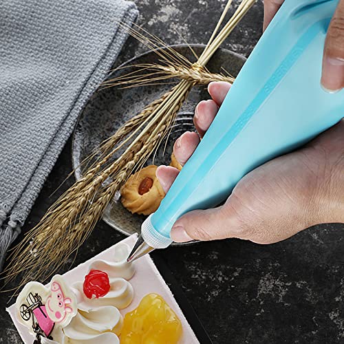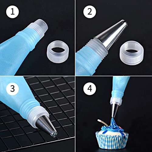 Funzionamento semplice: Sac a poche riutilizzabile contiene convertitori per una facile sostituzione degli ugelli. Per utilizzarla basta mettere la crema nella busta blu e strizzarla. Sono inclusi un totale di 1 tasca da pasticcere, 1 convertitore e 12 diversi stili di ugelli.