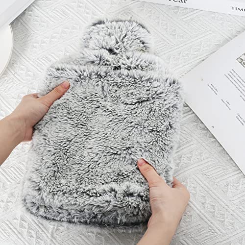 FINDIR Borsa dell'acqua Calda 2 Litri Borsa Acqua Calda Peluche Grande Boule Acqua Calda con Copertura Morbida Bottiglia di Acqua Calda in Gomma per Alleviare il Dolore e Tenere Caldo (Grigio)