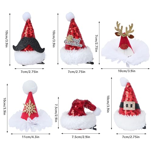 FINDIR 6 Pezzi Fermaglio per Capelli Natalizio Clip di Capelli Cappello di Natale Mollette per Capelli Natalizie Mini Cappello Natalizio Accessori per Capelli Natale Bambini Ragazze