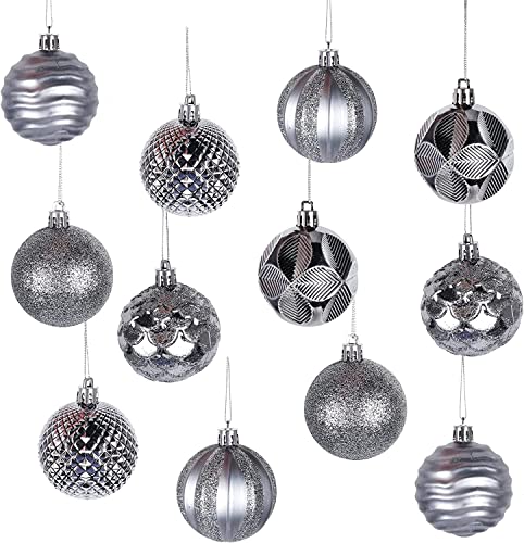 FINDIR 12 Pezzi Palle di Natale Argento Palline Decorative per Albero di Natale Palline Decorative da Appendere per Decorazioni Natalizie per L'Albero Christmas