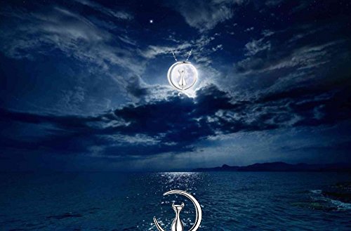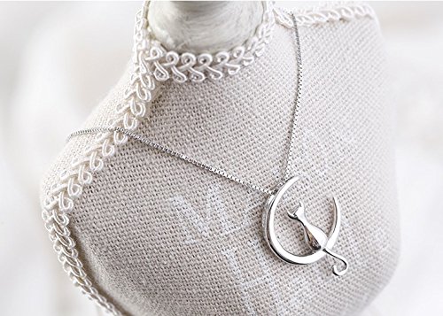 Findout - Collana con ciondolo a forma di gatto sulla luna in argento Sterling 925, catenina da 45 cm (f480)