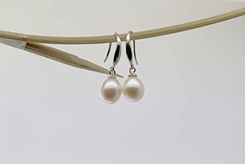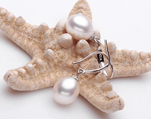 Findout Signore Sterling Orecchini di Goccia d'Acqua in Argento Perle d'Acqua Dolce Naturale di 8-10mm, per Le Donne Le Ragazze.