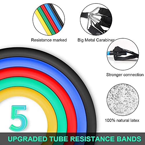 Findway Set Di Fasce Di Resistenza, Elastici Fitness Palestra Bande per Uomini e Donne con 5 Tubi Di Resistenza, Kit Allenamento Casa Per Fitness, Yoga, Pilates, Fisioterapia (18 Pack)