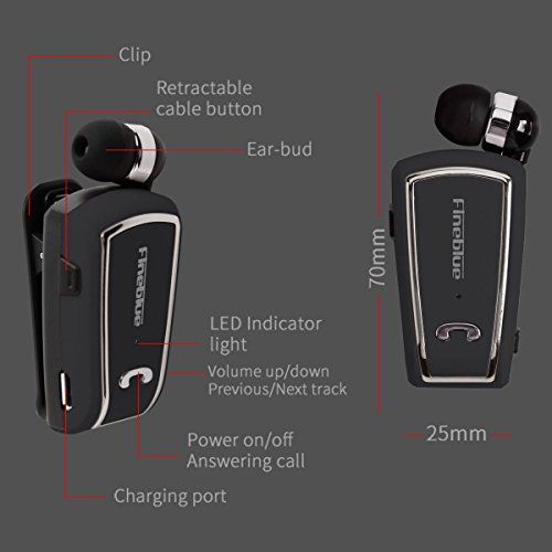Auricolari Bluetooth retrattili: linea retrattile con un clic per rollback. Mani libere grazie al design a clip sul colletto, fornisce un microfono in linea, estremamente comodo per rispondere alle chiamate e ascoltare musica. Nessun cavo si aggroviglia e nessun disordine.