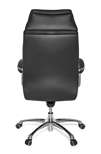 FineBuy Sedia Ufficio Vera Pelle Nero Poltrona Scrivania Ergonomica | Design Sedia con Ruote & Braccioli | Sedia Girevole Imbottita Studio