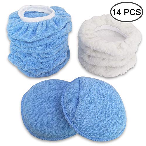 FineGood - 14 cuscinetti per lucidatrice per auto, in microfibra, con tasca per dita, colore: blu, bianco