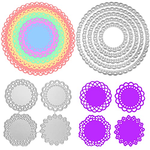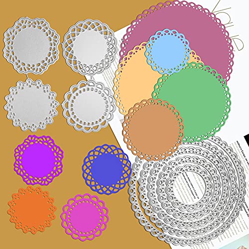 FineGood - 2 set di fustelle con motivi floreali per la creazione di biglietti e album, 9 fustelle in metallo di alta qualità con motivo circolare a fiori effetto pizzo per lavori artigianali