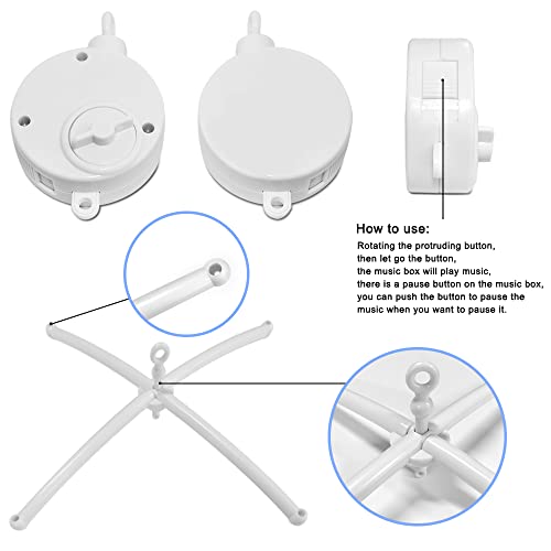 Design girevole: il mobile per lettino viene fornito con un gancio a croce, è possibile appendere i giocattoli del bambino su di esso. E il carillon ruoterà quando la musica è accesa, può attirare l'attrazione del bambino.
