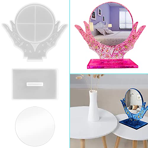 Cosa otterra: il kit di stampi in resina è costituito da un piccolo stampo per specchio per trucco e uno stampo di base. Nel frattempo, il set di stampaggio in resina è dotato di 5 specchi acrilici per lo stampo in resina.