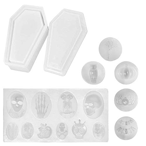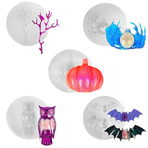 FineGood Stampo in resina siliconica da 7 pezzi per Halloween, stampi in resina per gioielli fai-da-te bara pipistrello teschio gufo ragno stampo in resina vassoio