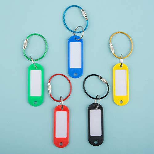FineGood - 30 targhette per chiavi con anelli, in plastica, 30 pezzi, con etichette e finestre e portachiavi in metallo