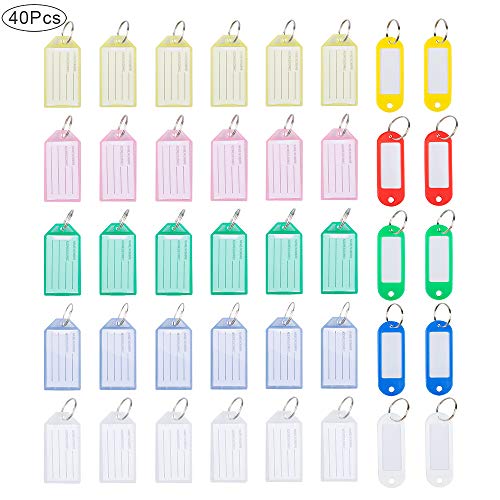 FineGood Targhette per chiavi con anelli a spirale, in plastica, multicolori, confezione da 40 pezzi