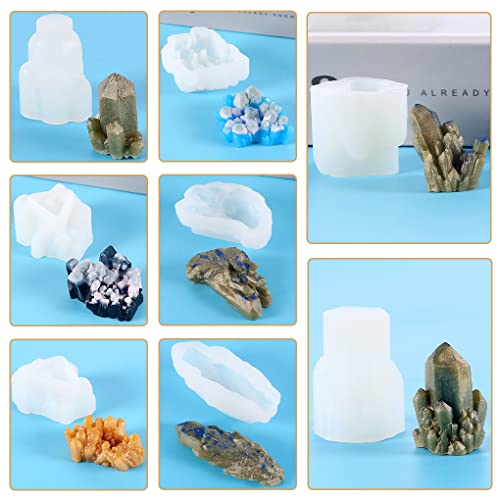 FineInno 8 Pezzi Set Stampi Resina di Grappolo di Cristallo Crystal Iceberg Stampo per Colata Epossidica in Silicone con Forme Diverse per Fare Quarzo Rock, Pietra preziosa