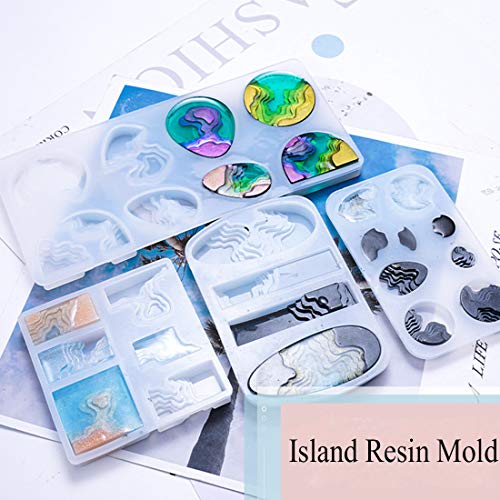 ❤ Stampi in resina a isola: stampo in stile Oceani, 4 stampi in resina includono: uova, goccia d'acqua, striscia, tondo, cubo, irregolare, semicerchio, rettangolo e altro, puoi usare lo stampo dell'isola per creare molti tipi di artigianato in resina.