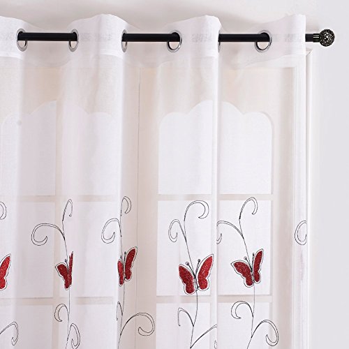 Top Finel - Tenda da finestra in voile con farfalle ricamate - tende per soggiorno con occhielli - tenda singola, Poliestere, Red Butterfly, 54" by 84"