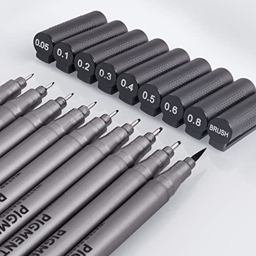 Fineliner, Micro Penne da Disegno, Nero Pigment Liner Calligrafia Pennarelli Pen, Pennarelli Punta Fine per Manga, Schizzi, Disegni Di Artisti, Redazione Documenti, Comic Scrapbooking- 9 Pezzi