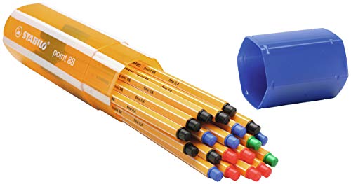Fineliner - STABILO point 88 - Big point Office - Box con 20 point 88 in 4 colori ufficio Nero/Blu/Verde/Rosso