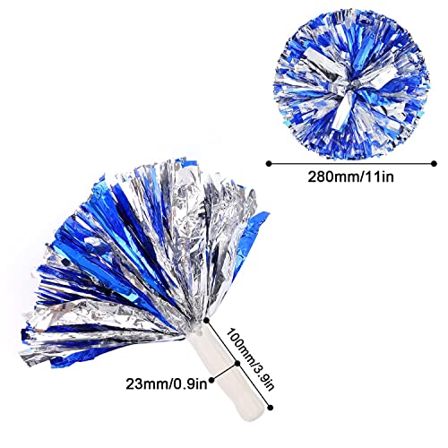 FINELYCR Pom Pom Cheerleading, 2 Pezzi 280 mm Pom Pom di Cheerleader, Blu e Argento - PON PON in Lamina di Metallo - Pom Pom Danza Adatto per Giochi, Competizioni, Feste