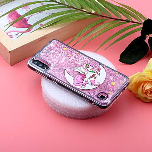 Finemoco Cover per Samsung Galaxy A10,Custodia Galaxy M10 Silicone Morbida Cover Trasparente 3D Glitter Cover Antiurto Protettiva Case Rosa Brillantini Liquido Custodie Gel TPU Bumper Cover,Cavallo