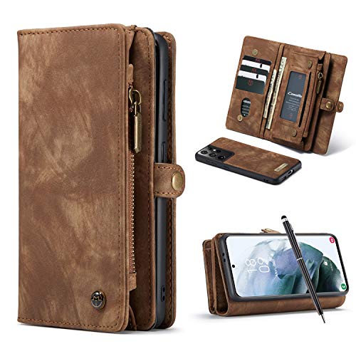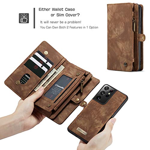 Finemoco Cover per Samsung Galaxy S21 Ultra Custodia in Pelle Portafoglio Galaxy S21 Ultra Cover a Libro 2 in 1 Rimovibile Magnetica Flip Cover con Slot Schede e Supporto e Silicone Bumper,Marrone