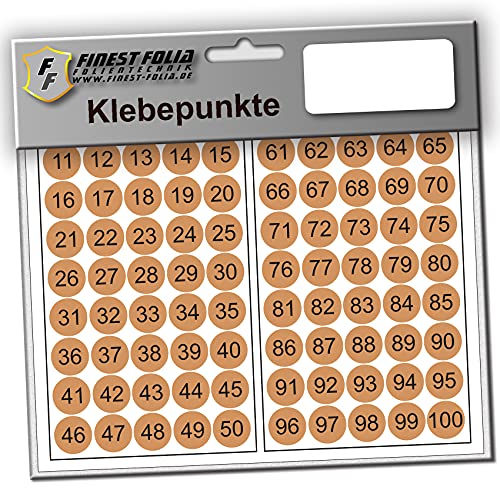 Finest-Folia - 100 cerchi in PVC, numerati 1-100 15 mm, adesivi di Finest-Folia, colore: nocciola