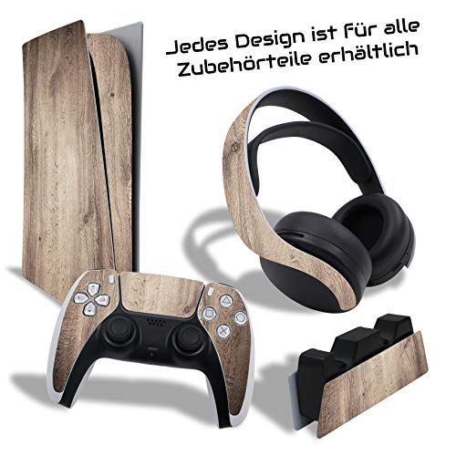 Finest Folia Pellicola protettiva compatibile con PS5 Sticker Custodia per Giochi Console Auricolare Caso Adesivo Pellicola Vinile Skin Anti Graffio Design Cover R141 (Auricolare, N. 10 Legno)