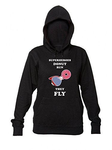 Finest Prints Superheroes Donut Run They Fly Fat Supermen with Donut Felpa con Cappuccio da Donna Extra Large