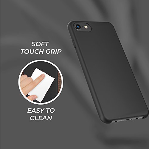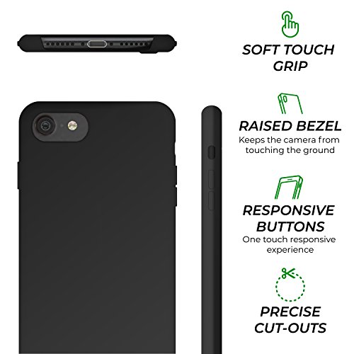 FinestBazaar - Custodia per iPhone Se 2020/8/7 in silicone liquido gel di gomma antiurto con morbida fodera in microfibra cuscino opaco antigraffio ultra sottile [nero] + pellicola salvaschermo inclusa