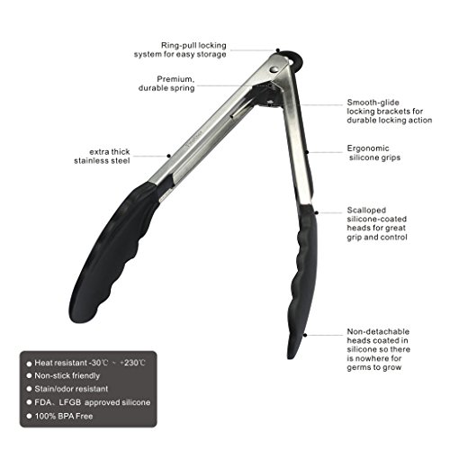 Alta qualità: Fatto di teel stailess di alta qualità e FDA, silicone approvato da LFGB, unisce la comodità di punte in silicone resistente al calore con la produttività e la longevità di acciaio inox, al 100% BPA.
