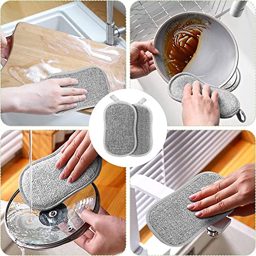 FINEVERNEK 6 Pezzi Spugna Abrasive, Supagna Cucina Lavabili, Spugna AntiGraffio in Microfibra, Spugna per Piatti Riutilizzabili, Spugna Grigia con Doppia Superficie