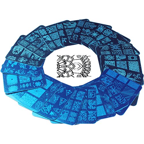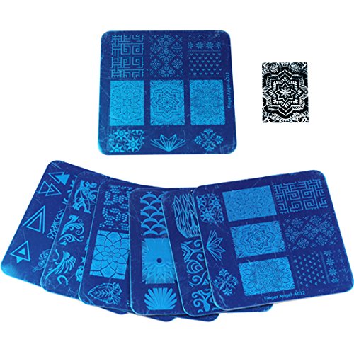 Finger Angel 20 pezzi di design diverso nail art stamping piatti + 1 pezzi quadrato verde stamper in gomma fai da te nail art immagini stampi piatti manicure strumenti di arte del chiodo