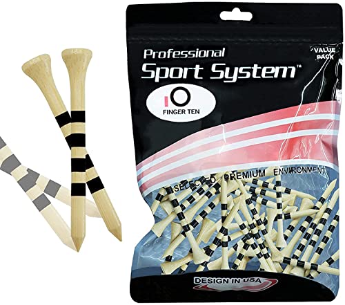 FINGER TEN Tee da Golf in Legno 100 Pezzi, Golf Tee 70 mm (2 3/4 Pollici) e 83 mm (3 1/4 Pollici), Golf Wood Tees Colore Blu Bianco Rosso Professional (Legno&Nero, 83mm)
