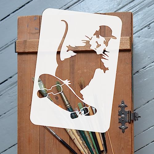 FINGERINSPIRE Banksy - Stencil riutilizzabile a tema skateboard con topo, 21 x 29,7 cm, modello per pittura a tema Banksy fai da te, stencil per disegno di topo Banksy per dipingere su legno, pareti