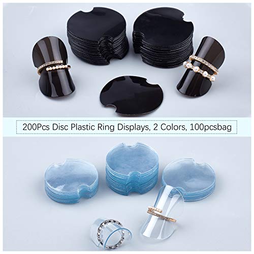 FINGERINSPIRE - 200 dischi per anelli pieghevoli in plastica (diametro: 3,8 cm, spessore 0,1 cm), 2 colori: nero e azzurro