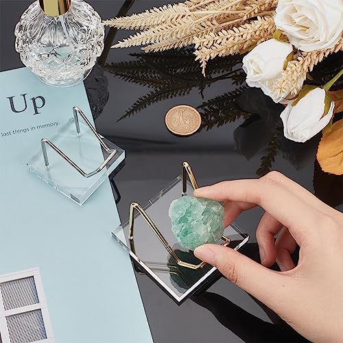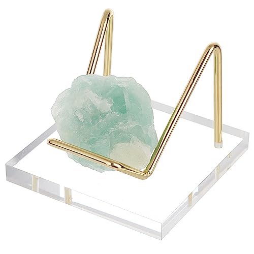 FINGERINSPIRE Espositore in pietra acrilica, 6,5 x 6,5 x 5 cm, base quadrata, a basso contenuto di ferro dorato, per pietre preziose, agata, rocce, sfere di cristallo
