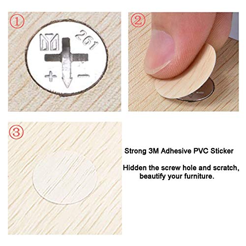 Ampia applicazione: adatto per l'uso su mobili in legno a venature, adesivi per armadietti, set di chiodi per armadietti, decorazioni a specchio, tappi per mensole, foro per tavolo, lampada, librerie e altri mobili per coprire bene i fori delle viti e i fori di montaggio.