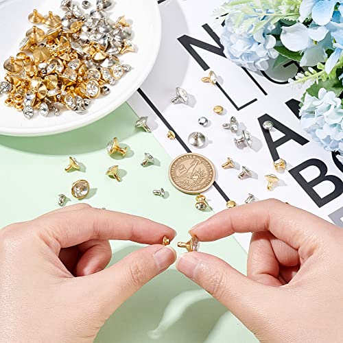 FINGERINSPIRE 280 Set 7 Misure Rivetti con Strass Trasparenti (5~11mm) Rivetti in Cristallo Oro e Platino Rivetti in Metallo A Doppio Cappuccio con Strass Borchie per Vestiti in Pelle Arti